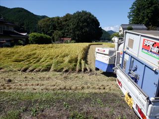 (モミがあまり濡れているとコンバインが壊れる)稲刈りを始めました。